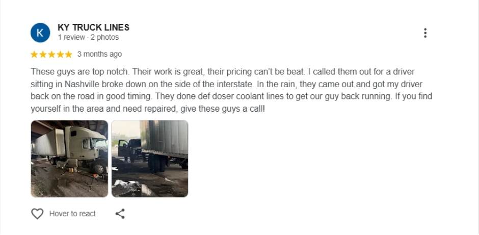 24/7 Mobile Truck Repair in Nashville TN.